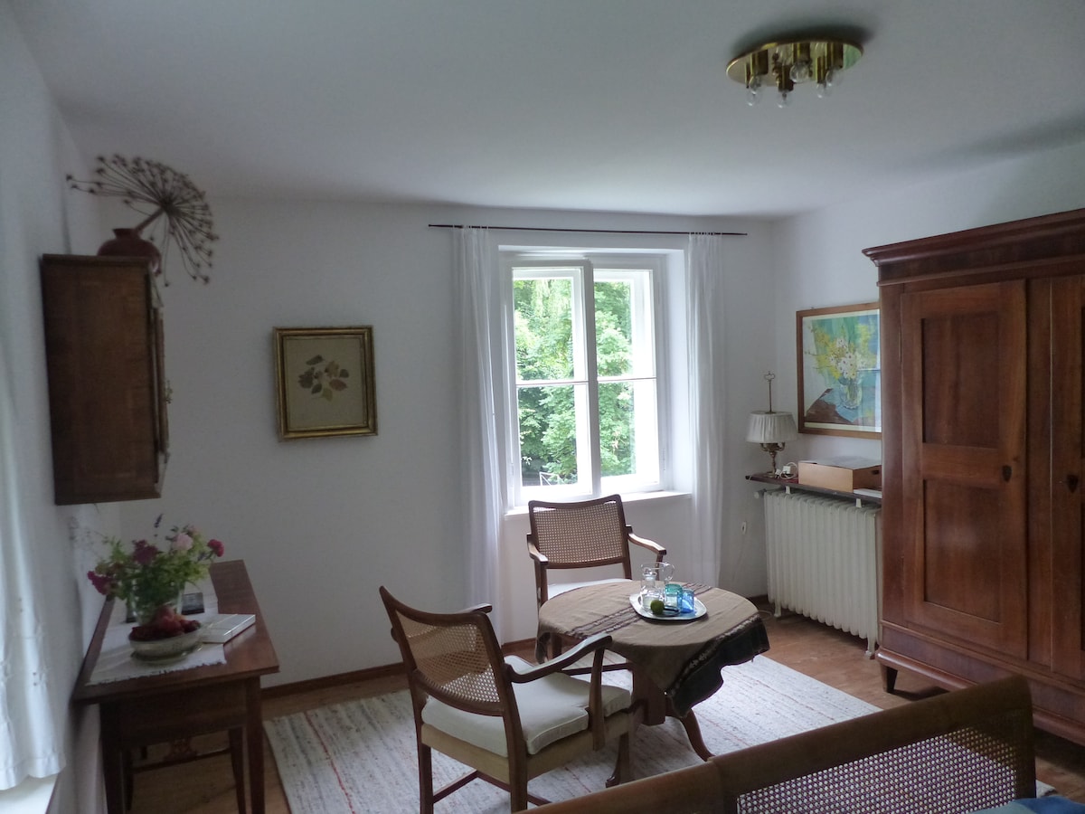 Das freistehende Gästehaus befindet sich im rückwärtigen Teil des historischen Anwesens Hammerschmiede Grafing (erb. 1664) , gelegen am Bachlauf der Urtel. Weit weg vom Straßenverkehr, grenzend an weite Wiesen und doch nur 1 km zum betriebsamen Marktplatz. Supermarkt, Bäcker, Biomarkt - alles fußläufig 12 Zugminuten von Grafing Bahnhof zum Münchner Ostbahnhof. Und S-Bahn nach München von Grafing Stadt. Ein guter Platz zum Arbeiten, Ausspannen, Ausflüge in die Berge unternehmen, Messe ..