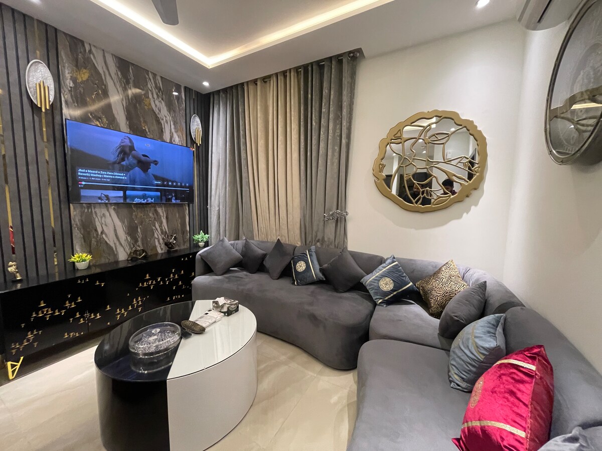 ★NAGRAĐENI SUPERDOMAĆIN OD STRANE AIRBNBA ZA NAŠE OCJENE GOSTIJU! ★ 1 kuhinja, 1 kuhinja za doručak, 2 dnevne sobe, 2 terase, trpezarija, TV salon (okrenut prema naprijed i sprijeda). Nevjerovatna lokacija, vrlo blizu restorana, džamije, trgovačkih centara (trgovački centar) i međunarodnog standardnog supermarketa. 15 minuta od međunarodnog aerodroma u Lahoreu. 5 minuta od autoputa i obilaznice i trgovačkog centra Gold Crest. Parking prostor za dva automobila i 24-satnu uslugu i sigurnost. ★ pogledajte nas na insta @thevillainndha