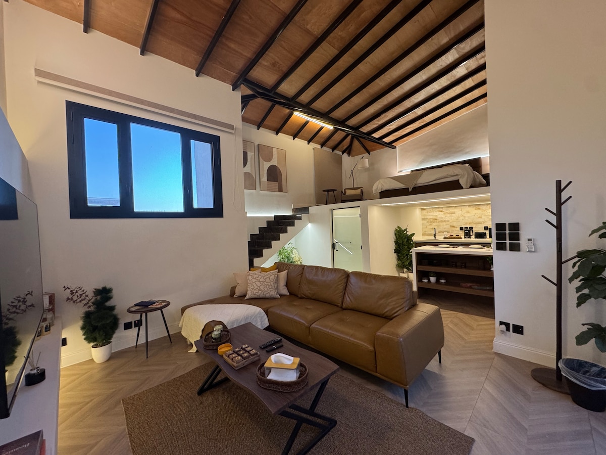 Experience a unique experience in a private Artist Studio offering relaxation and comfort. The studio includes a bed and a side seating area where you can enjoy watching on a 65-inch smart screen. There's also a separate kitchenet and a coffee to serve all your needs and stylish outdoor area with fire pit. location is close to all services, the tourist destination, and Riyadh Season areas (Boulevard,Arena,Etc) within a 5-minute. We would love to host you and share the experience with us!