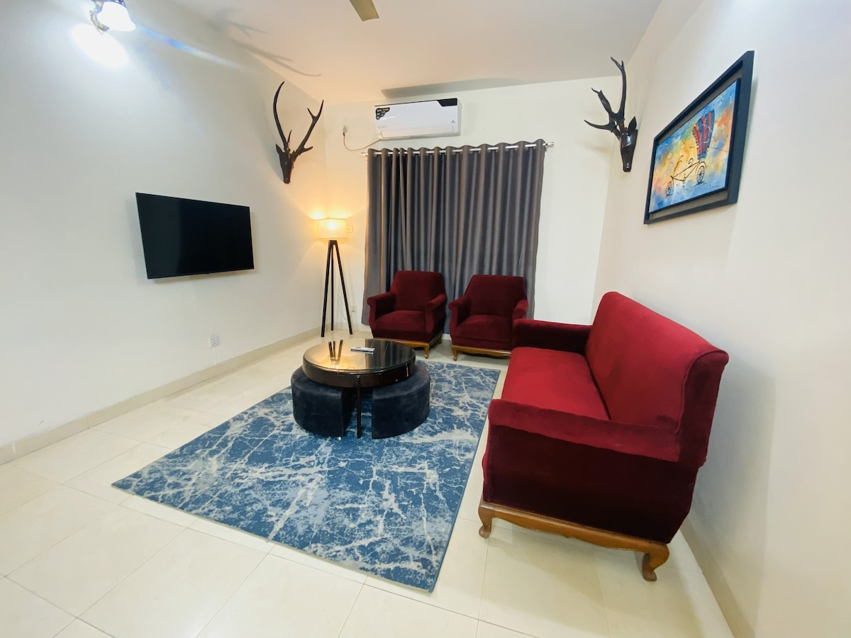 Ovo je dobro osvijetljen i novouređen stan. Ima 2 spavaće sobe (1 klima-uređaj) i glavni krevet ima gizer, Almirah, veliki Wi-Fi pametni TV s Wi-Fi mrežom i Wi-Fi mrežom, uključujući lokalne i intl. kanale, veliki frižider, mikrovalnu pećnicu, pročišćivač vode, Wi-Fi visoke brzine, kutiju za prvu pomoć, kauč, kauč, stol za čitanje/prijenosno računalo, plinski kamin, pribor za kuhanje, stol za objedovanje s potrebnim predmetima, čistu posteljinu, peškire, deke itd.