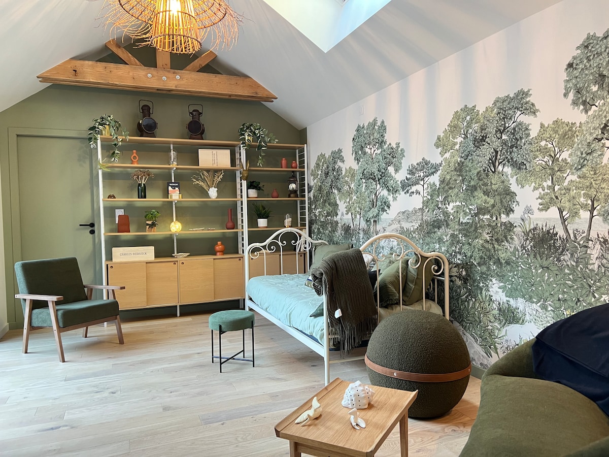 Ovaj šarmantni smještaj može primiti 5 gostiju i 1 bebu. Smještaj se sastoji od sljedećeg: U prizemlju - Dnevni boravak s TV-om, kaučem, foteljama - opremljenom kuhinjom. - Spavaća soba 1: s bračnim krevetom (140×190) - Kupatilo s tušem - Zaseban WC Na spratu: - Spavaća soba 2: s bračnim krevetom (140×190) - Spavaća soba 3: s krevetom za jednu osobu (100x190) Vanjski dio: - Prekrasan ograđeni vrt od 350 m² - Terasa od 9 m² s namještajem za uživanje u sunčanim danima.