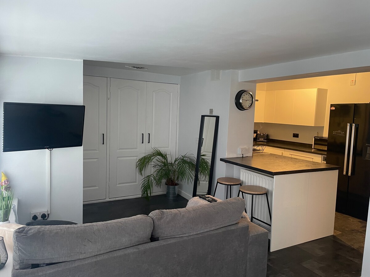 2 spavaće sobe. Jedna u prizemlju s pristupom terasi. susjedna garderoba WC Stepenice do osvijetljene i prozračne kuhinje /dnevnog boravka sa sofom i TV-om, susjedna velika spavaća soba i luksuzna tuš kabina sa velikim tušem. 2 minute do obale s restoranima i prekrasnim viktorijanskim parkovima 10 minuta do lokalnih prodavnica i željezničke stanice do Cardiffa( 15 minuta)