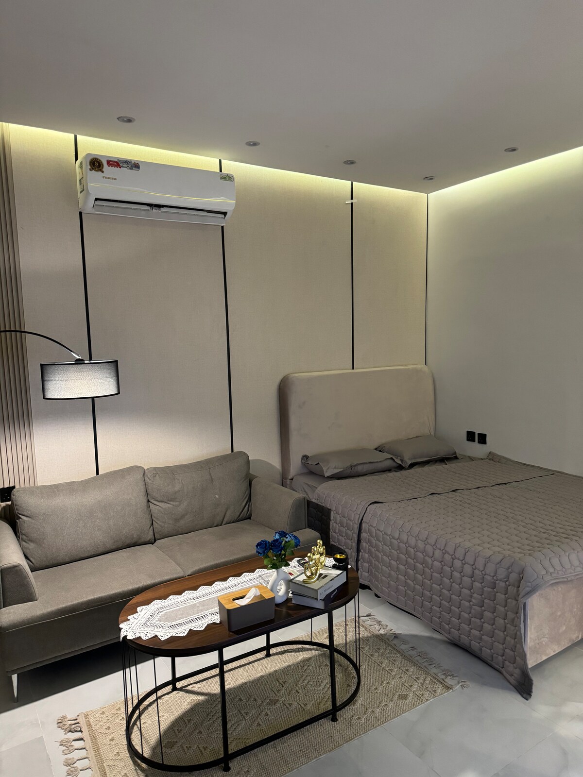 Moderan i elegantan jednosobni stan u Al Malqi, samo 10 minuta od Boulevard Riyadh Cityja, Boulevard World & Kingdom Arene i 8 minuta od trgovačkog centra Solitaire. Uživajte u udobnosti hotela uz udoban dnevni boravak, Nespresso kafić, potpuno opremljenu kuhinju, pametni TV, bračni krevet, dječji krevetić, sklopivi krevet i mogućnost samostalnog dolaska. Besplatne grickalice i pića, brzi Wi-Fi, klima uređaj, privatni parking i jednostavan pristup obližnjoj autobuskoj stanici koja povezuje metro Riyadh
