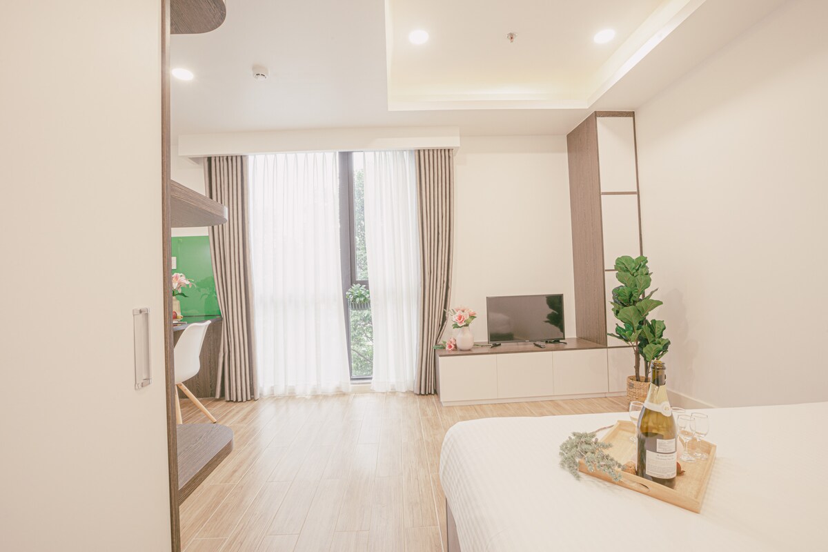 40-sqm ENTIRE STUDIO with WC & Kitchenette Modern Japanese Compact Studio featuring SAIGON's Coolest CIRCULAR WINDOWS. ---- + En-suite WC Modern, Clean and Spacious + Kitchenette with mini fridge, induction hob, kettle for food storage & heat-up. + Bedroom with TV and work desk. + Living room with cute circular windows Located in a friendly, safe, chic neighborhood of District 1. Easy access to all parts of the city. FREE WIFI. CLEANING TWICE PER WEEK