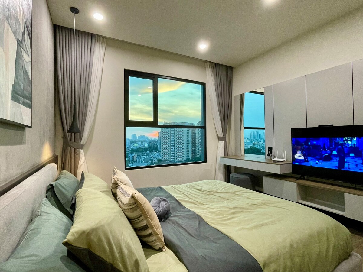 Dobro došli u naš udobni studio od 30m² u The Tresoru, District 4, samo 5 minuta od Distrikta 1. Uživajte u svijetlom i udobnom prostoru s punim sadržajima: bazenom, teretanom, obezbjeđenjem 0-24 i pogledom na balkon. Savršeno za samostalne putnike ili parove koji vole praktičnost i miran boravak u blizini centra grada. Za brzu podršku ili lokalne savjete, možete me kontaktirati putem popularnih aplikacija za chat nakon rezervacije (Ime: Max /민/小明).