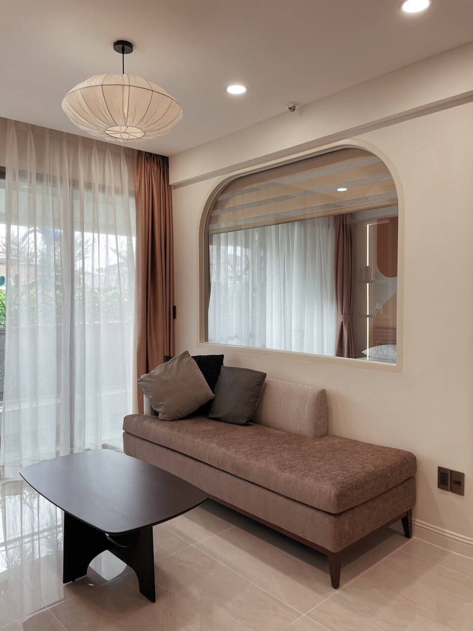 A stylish & comfortable apartment with balcony 85m2 at Hung Phuc Happy Residence located in the heart of district 7, Phu My Hung, with just a short walk to stores, mall, restaurants, and conveniences. Nearest bus stop in front. Highly educated and quite neighbors that surrounded by green parks and beautiful villas. Decorated in modern Japandi x Wabi sabi style with a focus on natural materials & clean lines. A great getaway or even staycation for those who want to experience new things.