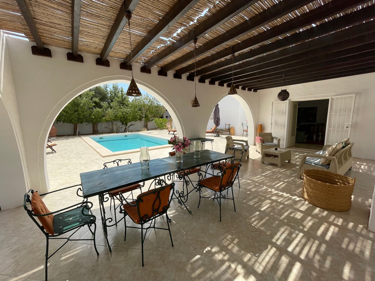 Zdravo , nudim vam prekrasnu vilu s bazenom na otoku Djerba na jugu Tunisa , s dnevnim boravkom, 3 spavaće sobe, 3 kupatila, jednim s jacuzzijem , velikom opremljenom kuhinjom, s velikim travnatim vrtom. 5 minuta od centra Houmt souk, 5 minuta od Midouna, 3 minute od plaže