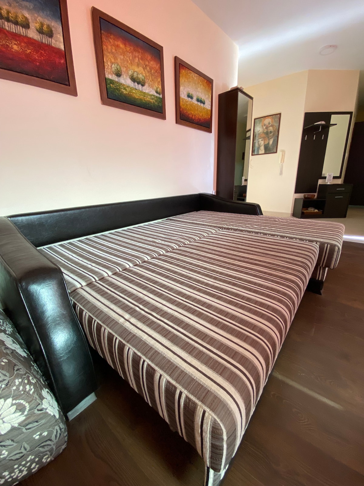 Dobro došli u naš udoban i sunčan stan pored gradskog parka St. George. Stan se nalazi u neposrednoj blizini centra grada i ima sve što vam je potrebno za udoban boravak. Elegantan namještaj, opremljena kuhinja, veš mašina, sušilica i kupatilo sa svime što vam je potrebno. U blizini supermarketa Lidl i Kaufland. Besplatan parking je dostupan ispred bloka. Stan se nalazi na 5. spratu i postoji lift za lak pristup. Osjećajte se kao kod kuće u žitnici Bugarske!