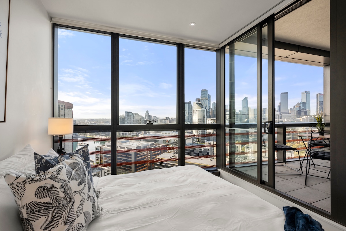 Smješten na gornjem spratu jednog od najboljih stambenih kompleksa u Melburnu, ovaj dobro dizajnirani stan ima neprekidan panoramski pogled koji se proteže od okeana do prekrasnih Docklandsa. S prozorima od poda do plafona u spavaćoj sobi, budit ćete se uz jedan od najboljih pogleda u Melburnu. Smješten na pogodnoj lokaciji, ovaj stan je udaljen 3 minute hoda od glavne željezničke stanice u Melburnu, Southern Cross Station, zajedno s maloprodajnim uslugama i potrebama za kupovinom namirnica.