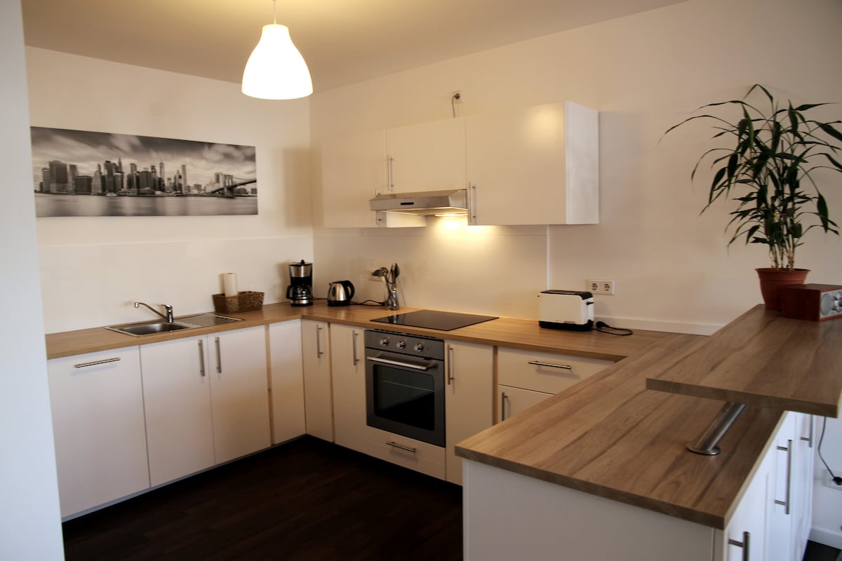 Udoban dvosobni stan u blizini centra. Supermarket, mali kiosk, prodavnica sladoleda i bolnica iza ugla. Javni prevoz 5 do 10 minuta pješice. Centar grada Plauen udaljen je 10-15 minuta hoda. Nudimo potpuno namješten stan koji je savršen za kraća putovanja ili dugoročne boravke. Porodice su također uvijek dobrodošle kod nas, na zahtjev se nalazi i dječji krevetić. Također nam je drago što možemo poželjeti dobrodošlicu međunarodnim gostima.