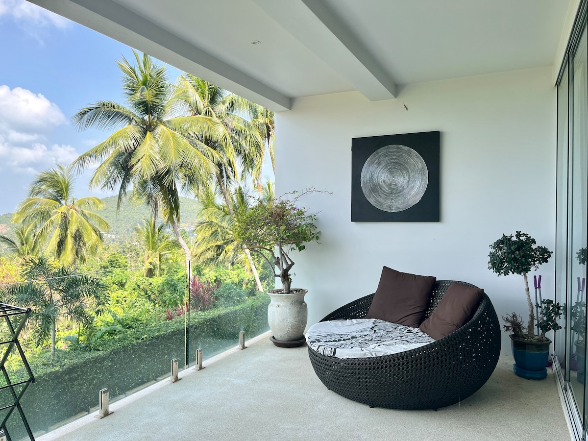Opustite se u ovom mirnom, elegantnom prostoru s 1 spavaćom sobom. Radni sto, čajna kuhinja i beskrajni okean i zalasci sunca. Imajte na umu da vam se unaprijed naplaćuje potrošnja električne energije i vode od 200 THB po noćenju