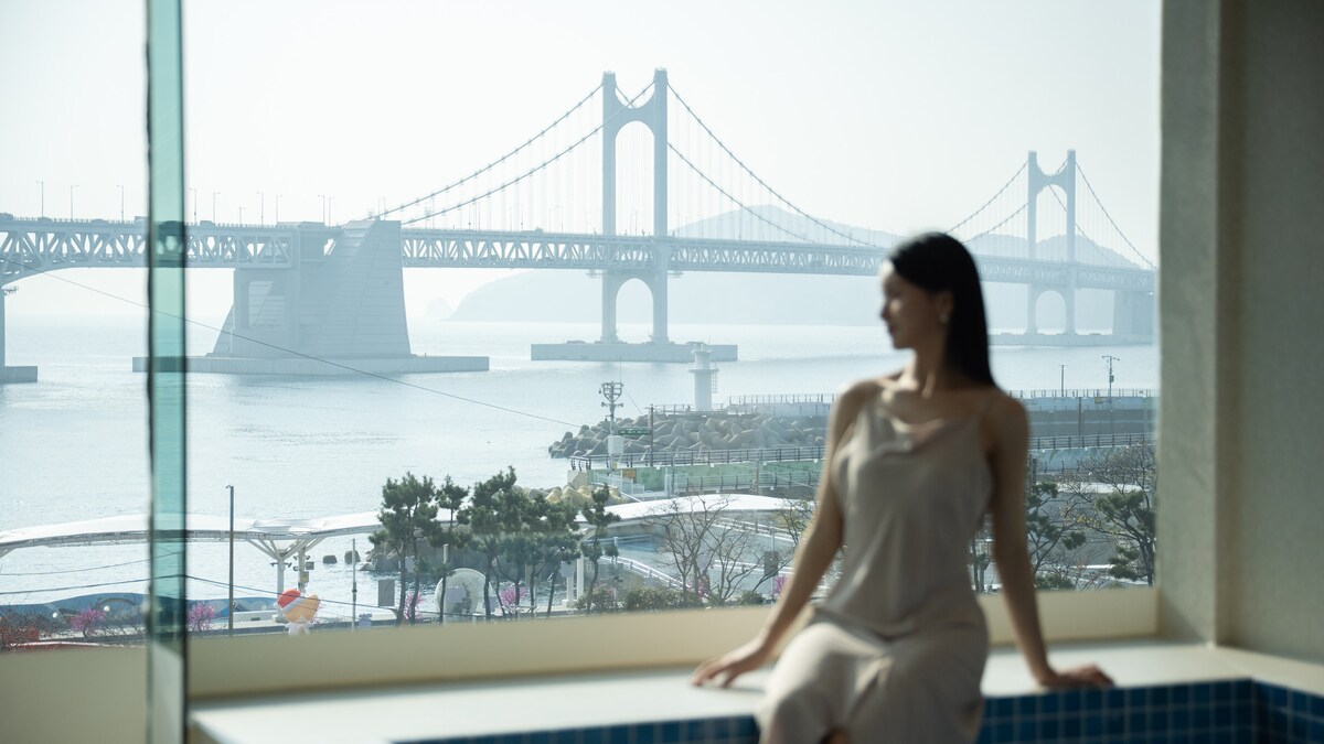 Fotografija mosta Gwangandae / Božićno drvce / Postavka za društvene igre / Maksimalno 6 osoba / Jacuzzi / 1 boca vina / Odjava u 12 sati