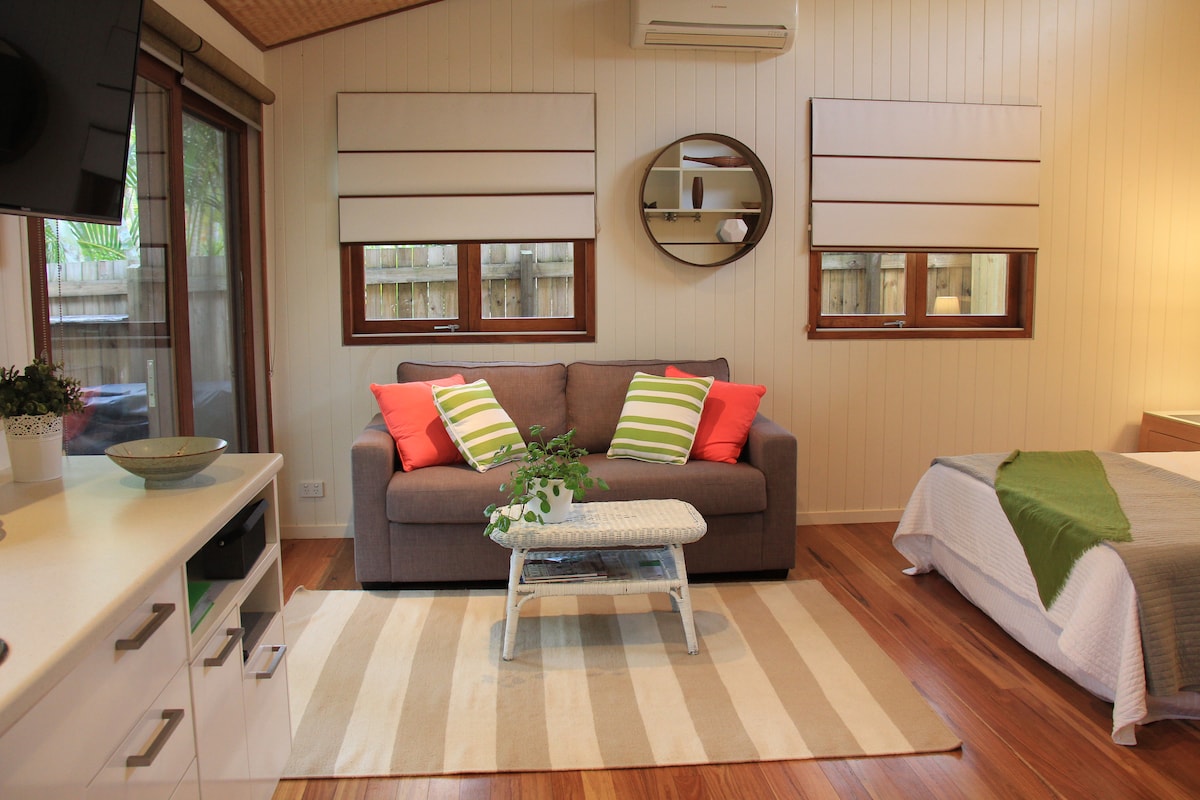 Samostalna garsonjera je odvojena od glavnog prebivališta koje vodi do nacionalnog parka, s opsežnom mrežom staza za planinarenje ili trčanje. Studio prostor s indukcijskom pločom za kuhanje, mikrovalnom pećnicom i roštiljem na terasi, korištenje zajedničkog bazena. Minuta do : 10 hoda do mirne netaknute surferske plaže 7 vožnja funky Peregian Beach kafići i prodavnice 10 vožnje do Noosa Junctiona 8 minuta hoda do autobuske stanice - besplatni prazni autobusi tokom Božića i Uskrsa u