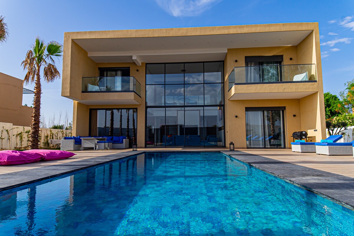 ● 3 min – Famous & Waky Beach ● 5 min – Aqua Mirage, PalmGolf ● 7 min – Bd Mohamed VI, Mégarama, Kart Racing ● 8 min – Al Mazar Mall, Oasiria and Pickalbatros Aquapark ● 20 min – Jemaa El Fna, Airport & City Centre ❤️ Features & Amenities: ● 450 m2 property ● Smart TV + Netflix ● 3 Queen Beds | 2 Modern Baths ● AC & Heating ● Fast Wi-Fi ● Private Heated Pool & Garden ● Fully Equipped Kitchen & Nespresso Machine ● Washing Machine ● Free Private Parking ● Prime Location ● 24/7 Secured Residence