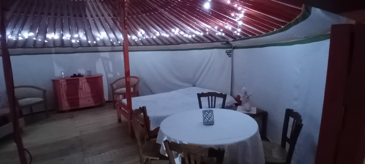 Smještaji u jurti s garniturom za sjedenje na otvorenom
