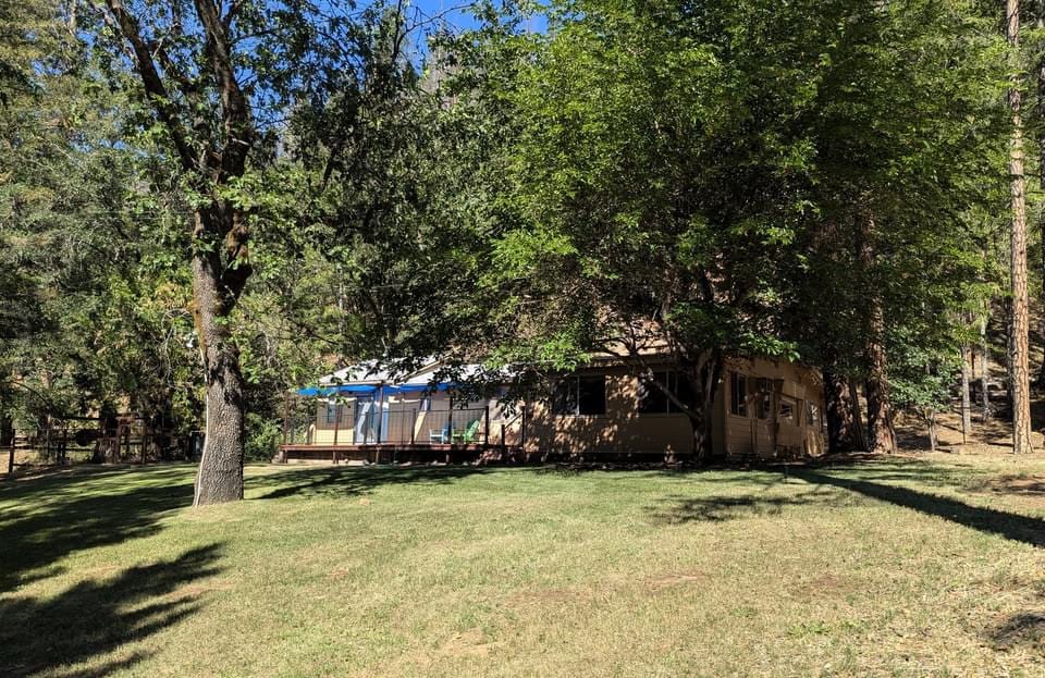 Dobro došli u brvnaru „Quad-P”, smještenu na 3 hektara duž 400 stopa rijeke Trinity. U blizini Douglas Cityja u Kaliforniji, brvnara ima kompletnu kuhinju, trpezariju, veliku dnevnu sobu i velikodušnu privatnu terasu s nevjerovatnim pogledom na rijeku i planine. Tri spavaće sobe s bračnim krevetima i dvije vrlo male spavaće sobe s bračnim krevetima, tri kupatila, udobno spava 6 osoba. Starlink Brzi internet i upotreba telefona omogućavaju rad na daljinu. Električni grijači u sobi i klima-uređaji