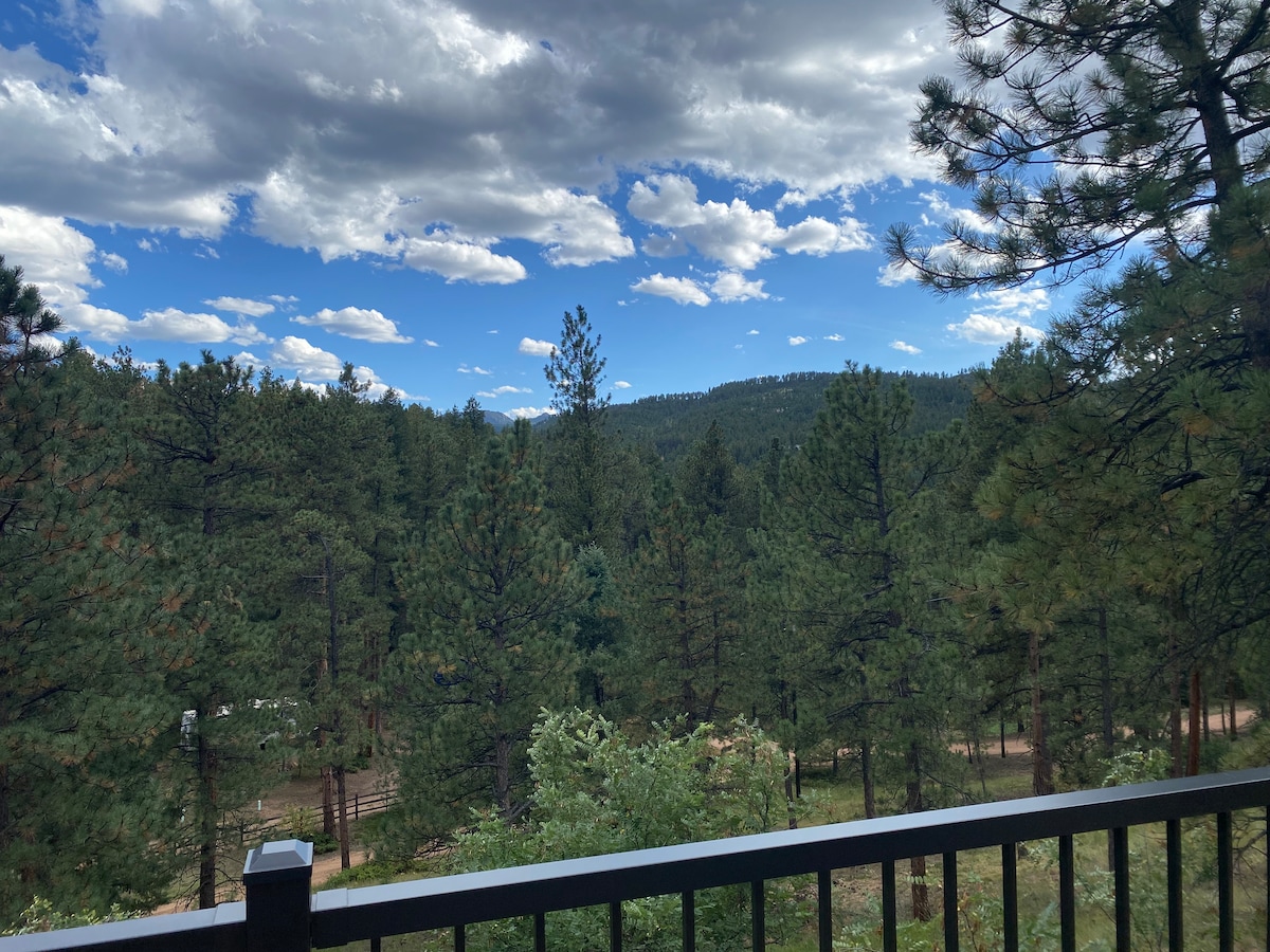 Tucked amongst the fragrant pines of the Pike National Forest, Pike's Perch features: - incredible views of Rocky Mt. peaks - proximity to Denver/DEN, Gold Medal fly fishing waters, and hundreds of miles of multipurpose trails. - AC/Climate Control - modern comfortable furnishings - 150 Mb/s Internet - and so much more! This rental is the perfect Rocky Mt. escape and Denver-local Stay-cation (without the I-70 traffic). Enjoy incredible views from sunrise to sunset. Find your respite here.