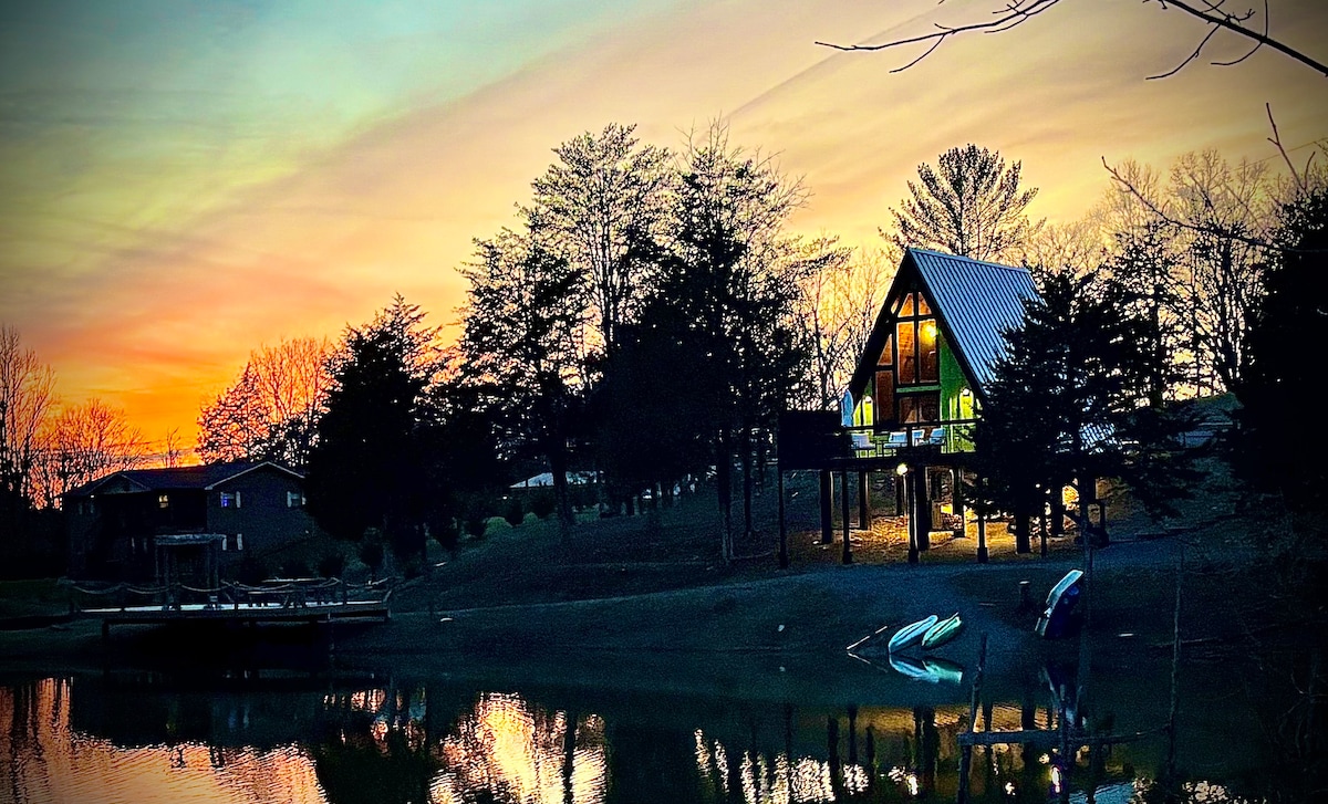 Escape to this eco-friendly A-Frame retreat, just minutes to GSMNP! Enjoy included activities like hiking, pedal boating, kayaking, and fishing on a private 2-acre stocked lake. Relax with EV charging, a cozy fire pit, charcoal grill, fully equipped kitchen, and in-unit washer/dryer. Plus, a kid’s play area, fishing docks, trails, and firewood are yours during your stay. 1.5 miles to Soaky Mountain Water Park. Sleeps up to 4 guests—no pets, please! Extra guests need approval and a small fee.