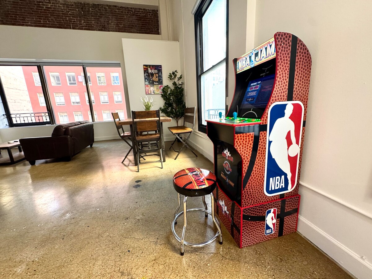 Uživajte u ovom DTLA potkrovlju na temu muzike s besplatnim parkingom, vrlo rijetkom lokacijom na nevjerovatnoj lokaciji. Vrlo prikladno za porodice, u blizini lokacija, tihi i poštovani susjedi. Vrlo jedinstven prostor! Ova jedinica ima dnevnu sobu, kuhinju, spavaću sobu i kupatilo, uživajte u svemu o Los Angelesu iz ovog nevjerovatnog potkrovlja! NAPOMENA: Prostor na krovu, uključujući bazen i masažnu kadu, trenutno je ZATVOREN zbog izgradnje i ostat će NEDOSTUPAN do 29. septembra 2025. godine.