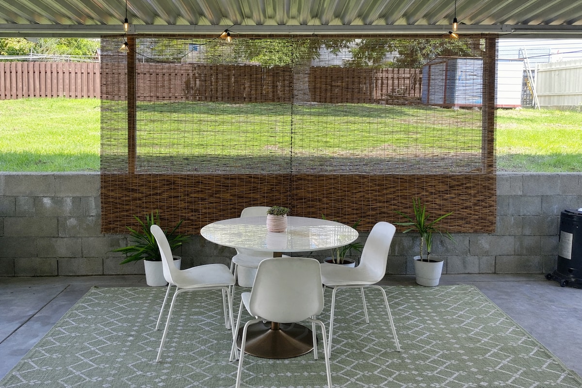 Pošaljite nam poruku za našu POSEBNU PONUDU! Pobjegnite u ovo moderno, blistavo čisto utočište iz sredine prošlog vijeka s udobnim krevetima, spa centrom na otvorenom, predimenzioniranim dvorištem, ognjištem i kinom na otvorenom! Samo nekoliko minuta od zoološkog vrta u San Diegu, centra grada i samo 20 minuta do plaže i SeaWorlda. Lagano se spustite na naš odjeljak Crate and Barrel, našu predimenzioniranu sobu i dasku iz sredine prošlog vijeka modernog kauča s 3 sjedišta od 89", vašu privatnu radnu stanicu u niši za rad na daljinu i potpuno opremljenu kuhinju.
