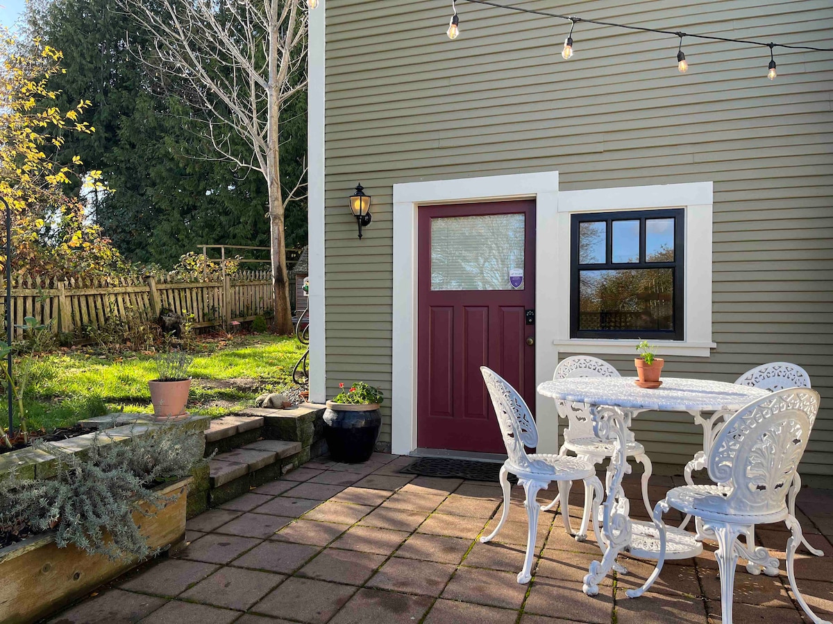 Cozy West Coast Studio Escape to this bright, airy studio guesthouse, just 12 km from Sooke town centre in a tranquil rural setting. Stay cozy with the glass-fronted wood-burning stove and enjoy the outdoors with a Cedar Japanese-style soaking hot tub under bistro lights and a refreshing outdoor shower. Just minutes from Gordon’s Beach, this is the perfect place to relax and soak up the serenity of the West Coast. *outdoor shower turned off during winter months to avoid freezing pipes