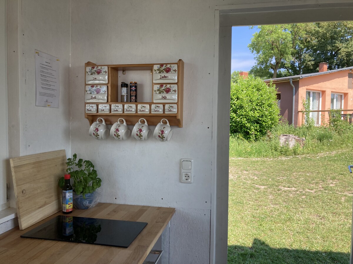 Prostran i udoban, potpuno opremljen automobil. Smješten veoma tiho na seoskoj cesti, između glavne kuće i komšije u prirodnom vrtu. Spavaća soba na prednjem dvorištu, prostor za sjedenje do malina, mala kuhinja, frižider/plinska peć, protok. Voda iz sistema za punjenje (hladno). Cl. kupatilo s peškirom za lice (hladno). Privatni vrt s prostorom za sjedenje. Privatno kupatilo s tuš-kadom u kući . 1 km do kupališta i planinarske staze Baltičkog mora. Darss, Zingst i Fisherchland su lako dostupni s dobrim biciklima.
