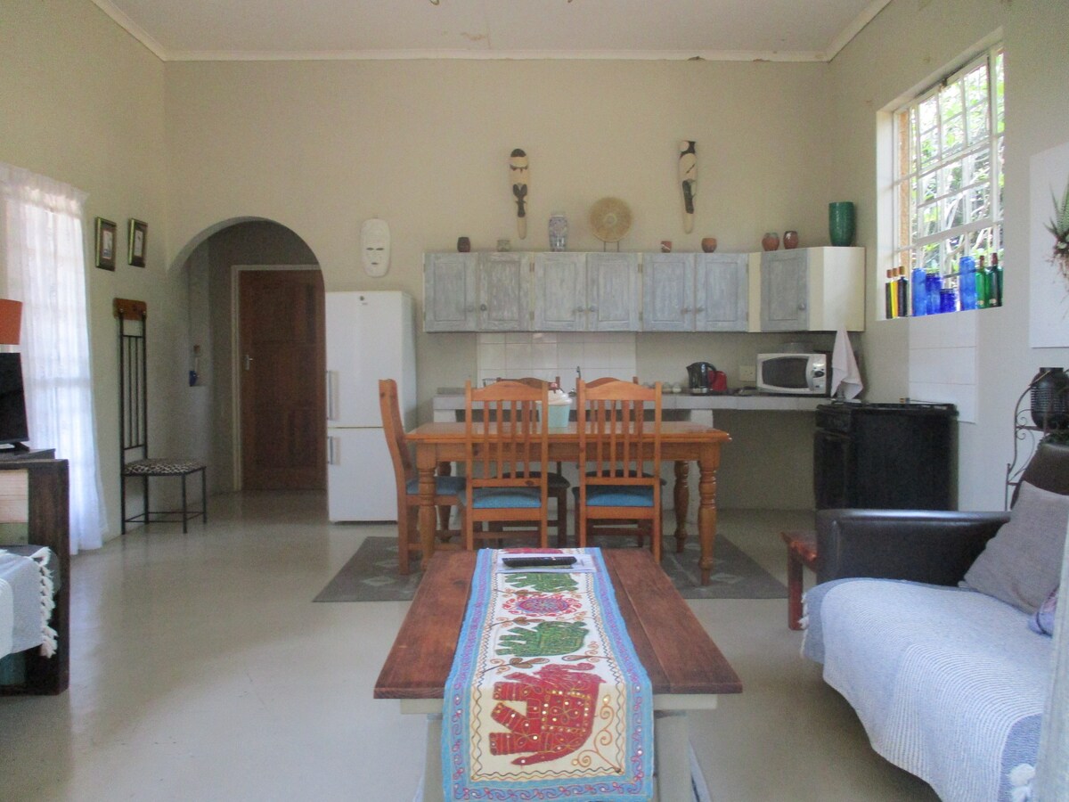 Udoban stan s bračnim krevetom (Queen XL), kupatilom, kuhinjom i malim TV uglom sa kožnim kaučem. Besplatan Wi-Fi. Nema prolijevanja tereta zbog napajanja za nepredviđene situacije. Vrlo dobro smješten u blizini centra Nelspruit, aerodroma KMIA, N4 i vrhunskih restorana. Udaljenost od 250 metara hoda do najbližeg najbolje ocijenjenog restorana. Uživajte u miru prirode i poslijepodnevnim šetnjama na sigurnom i zaštićenom imanju. Idealno za poslovna putovanja ili opuštenu osobu koja traži opuštajući prostor u blizini terena za golf.