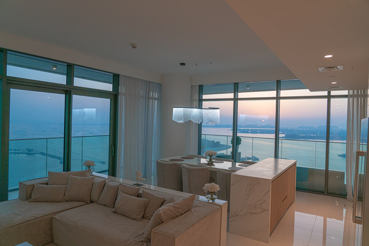 🌊 Luksuzni 3BR stan uz plažu sa zadivljujućim pogledom na 🌅 Atlantidu i Arapski zaljev. Smješten na legendarnoj 🌴 Palm Jumeirahu, nudi 🏖️ direktan pristup plaži, 🛋️ elegantne interijere, 🍳 kompletnu kuhinju i pogled na 🌇 izlazak sunca s privatnog balkona. Opustite se u prostranim dnevnim boravcima i uživajte u potpunoj privatnosti. Savršeno za porodice ili grupe koje traže elegantan, luksuzan odmor u Dubaiju s nezaboravnim krajolikom.