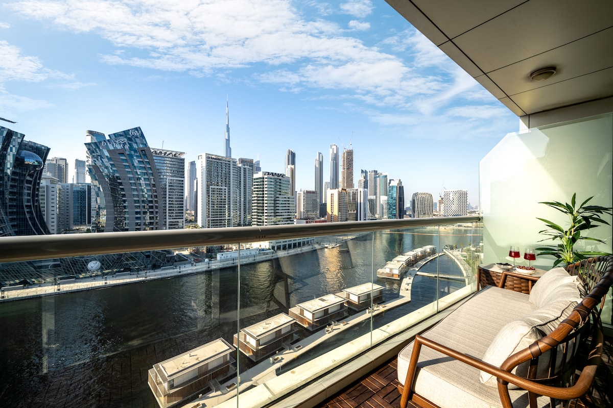 Nestled in vibrant downtown Business Bay, our apartment is minutes away from Burj Khalifa. Enjoy Dubai Skyline and Burj Khalifa views from your balcony. Revel in lavish amenities—complimentary pool, gym, parking, and scenic fitness trail. Explore on foot or by bike, with landmarks like Burj Khalifa, Dubai Mall, and Dubai Fountain within reach. Seamless travel, with Dubai International Airport just 8.7 miles away. Immerse yourself in luxury and convenience. Enjoy new year firework show .