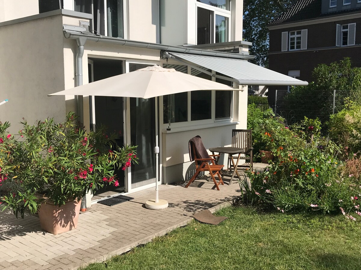 Naš nedavno renovirani stan u mirnom Neudorfu nudi centralnu lokaciju i brzu vezu s glavnom stanicom (15 minuta autobusom/vozom), kao i s oba univerzitetska kampusa (10 minuta hoda). Do zoološkog vrta i regatne staze (Wedau) možete doći i u roku od 20 minuta! Živite na prvom spratu naše kuće, ali uživajte u privatnosti kroz sopstveni ulaz. nedavno renoviran, privatni stan s jednostavnim pristupom centralnoj stanici, univerzitetu, zoološkom vrtu i Regattabahnu.
