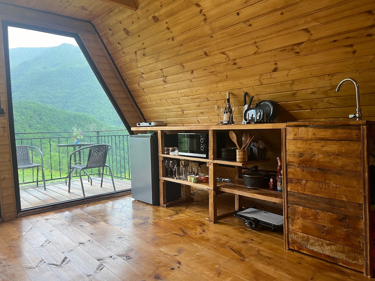 Savršeno skrovište gdje se bezvremenska elegancija susreće sa spokojem prirode. Opustite se u privatnom jacuzziju, osvježite se u sauni i sklupčajte se pored kamina dok sunce zalazi nad nacionalnim parkom s pogledom koji oduzima dah. Probudite se uz zvukove prirode, lutajte slikovitim šumskim stazama odmah iza vaših vrata i završite dan autentičnom degustacijom gruzijskog vina u našem podrumu. Ovo očaravajuće utočište spaja rustikalnu ljepotu s profinjenom udobnošću, za one koji traže mir, romantiku i nezaboravne trenutke.