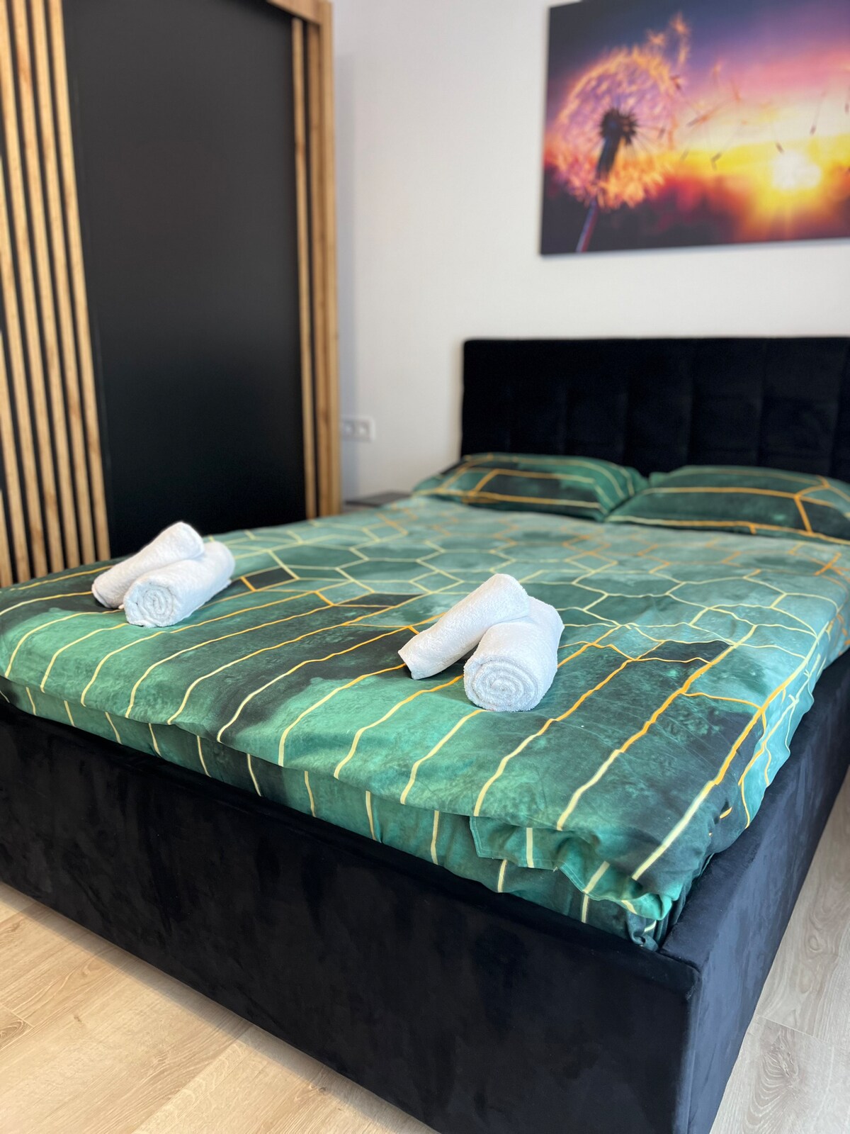 Opustite se u ovom mirnom i elegantnom prostoru. Moderan dizajn stana učinit će boravak što ugodnijim i udobnijim. Stan ima sve potrebne sadržaje za smještaj: TV , mašinu za pranje veša, frižider sa zamrzivačem ,Wi-Fi. Stan se nalazi u novom kompleksu s parkingom i privatnim dvorištem.