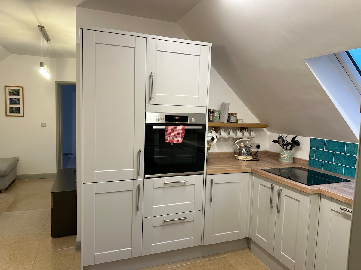 Recently renovated listed 2 bedroom first floor apartment. Large modern well equipped kitchen with breakfast bar. Living room with sofas, bean bags electric fire and large television. 2 bedrooms, one double one twin. Beautiful bathroom with roll top bath. Set in the rolling Kent country side perfect for an action packed weekend away with the kids, seeing friends and family or a sophisticated few nights away with friends. Perfect for friends, families or contractors.