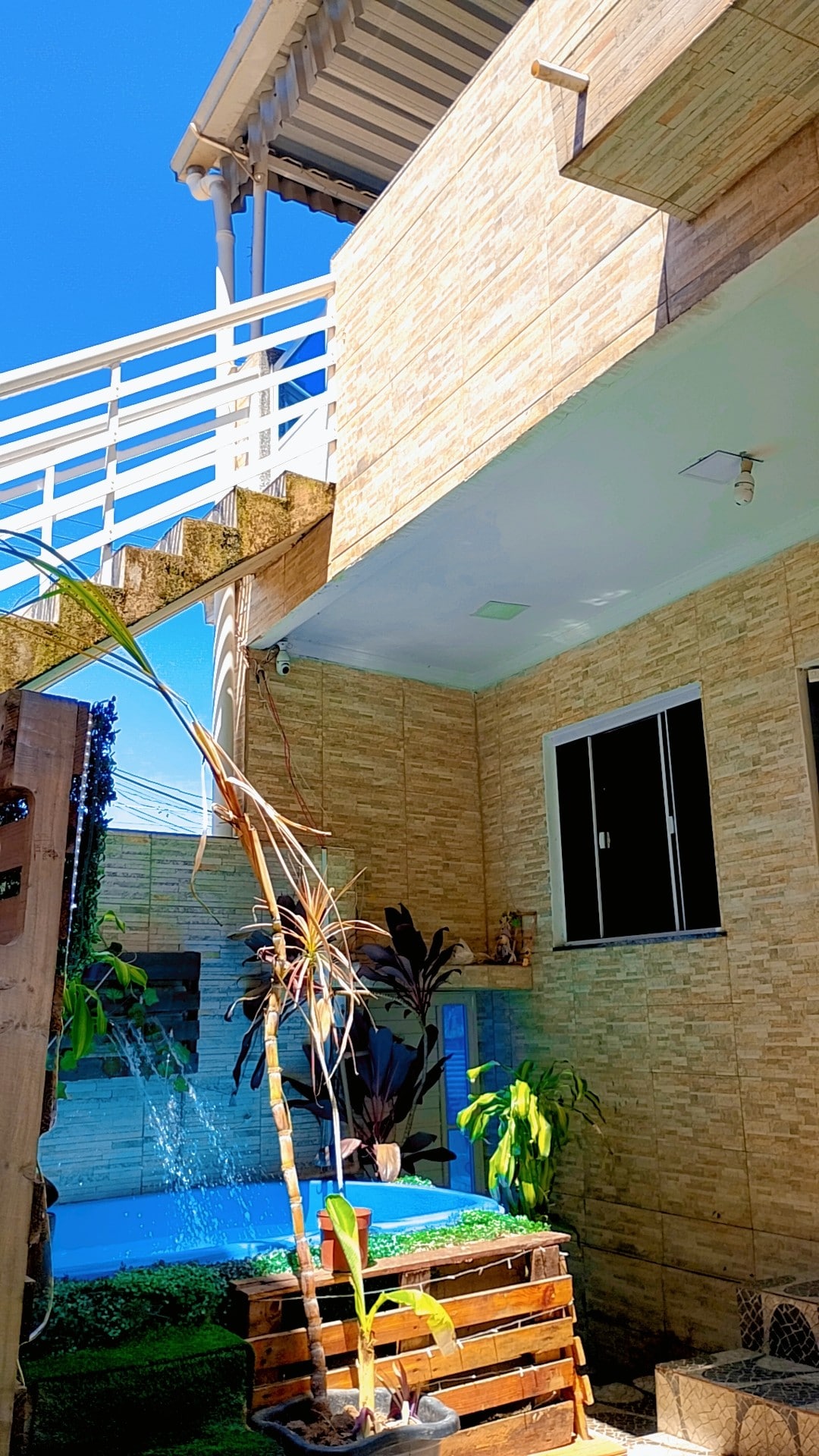 Pequena casa com pátio e vista panorâmica do Rio