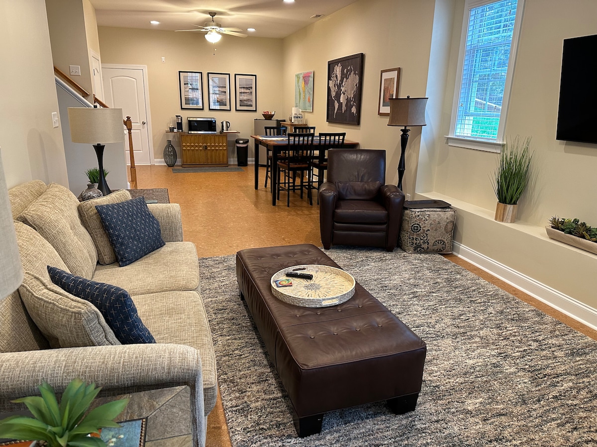 Pretvorio sam svoju kuću u dupleks, tako što sam dodatak iz 70-ih pretvorio u privatni, udoban i šarmantan prostor. Tu su čajna kuhinja, trpezarija, prostor za sjedenje, spavaća soba i kupatilo. Ta lokacija bi bila idealna za nekoga kome je potreban brz pristup Regionalnoj bolnici Duke (udaljenoj 4 minute) ili centru grada (6 minuta), ili za nekoga ko želi zadržati naviku trčanja (zeleni put je u blizini). Takerija, supermarket i kafić su u neposrednoj blizini.