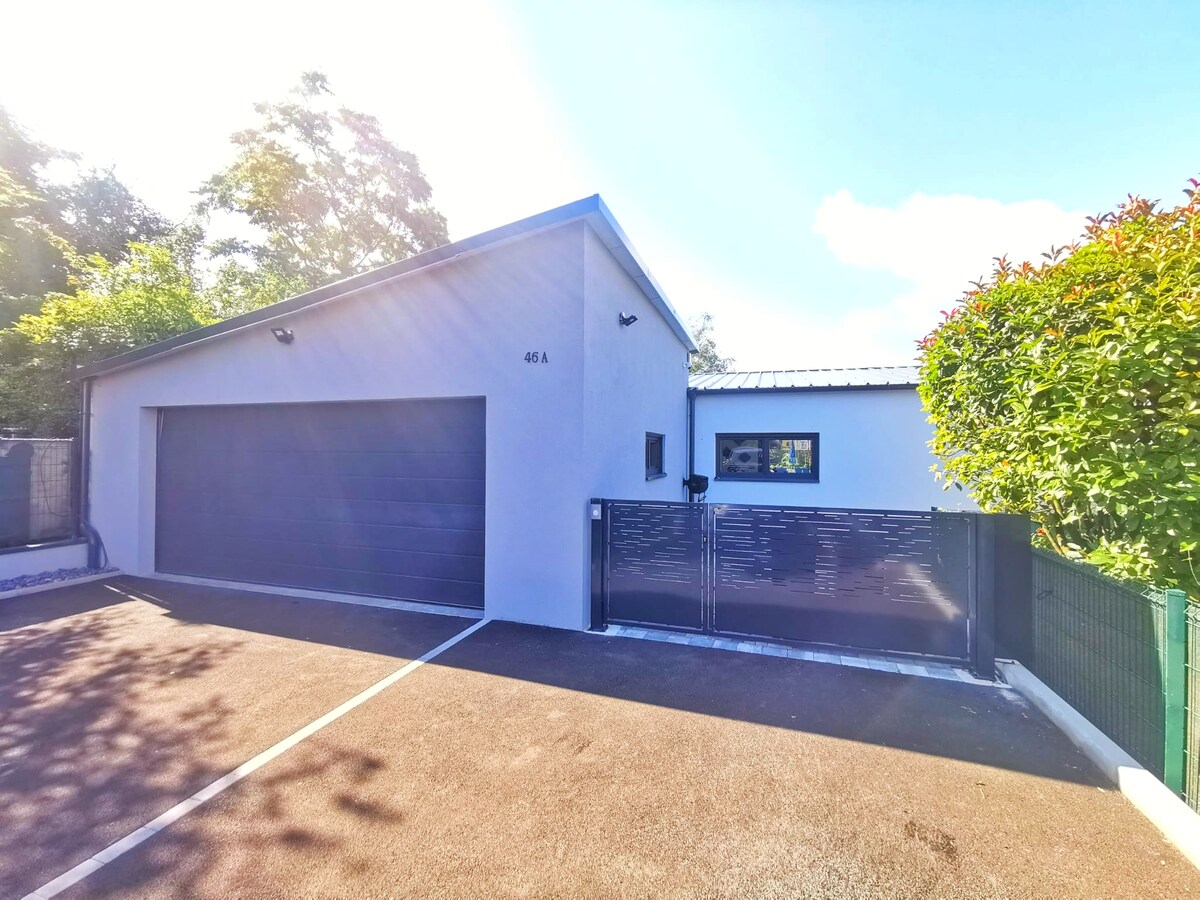 Studio od 40 m2. Blizu vinske rute Colmar i Alsace. Smještaj uključuje osnovnu opremu kako biste se osjećali kao kod kuće: - Dnevni boravak s TV-om, Wi-Fi - Bračni krevet s posteljinom - Tuš kabina s peškirima - Opremljena kuhinja s mikrovalnom pećnicom, pločom za kuhanje, frižiderom, aparatom za kafu, kuhalom za vodu, čajem, kafom, soli i biber - Privatna terasa Dolazak u smještaj se vrši samostalno, odvojen ulaz od našeg glavnog ulaza, zahvaljujući kodnom sandučetu.