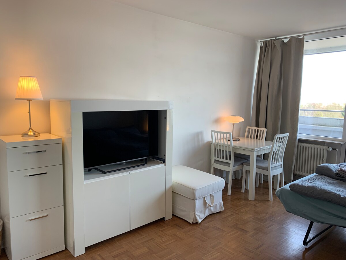 Ovaj potpuno opremljen stan koji nudi sve usluge (radni sto, daska za peglanje, aparat za kafu, mašina za pranje veša, peškiri, posteljina) koji će vam trebati tokom boravka. Nalazi se na pješačkoj udaljenosti od podzemne stanice ‘‘ Theodor-Heuss-Brücke ‘‘ (<5min; U78/U79) koja služi Messe, Arena iAltstadt na samo nekoliko stanica. Prošetajte do rijeke Rajne (10 minuta) za prekrasne zalaske sunca, pića nakon posla i razne sportske aktivnosti. Bazen i spa ‘‘Momentum SPA‘‘ se nalaze u zgradi za samo 12,50EUR po satu.
