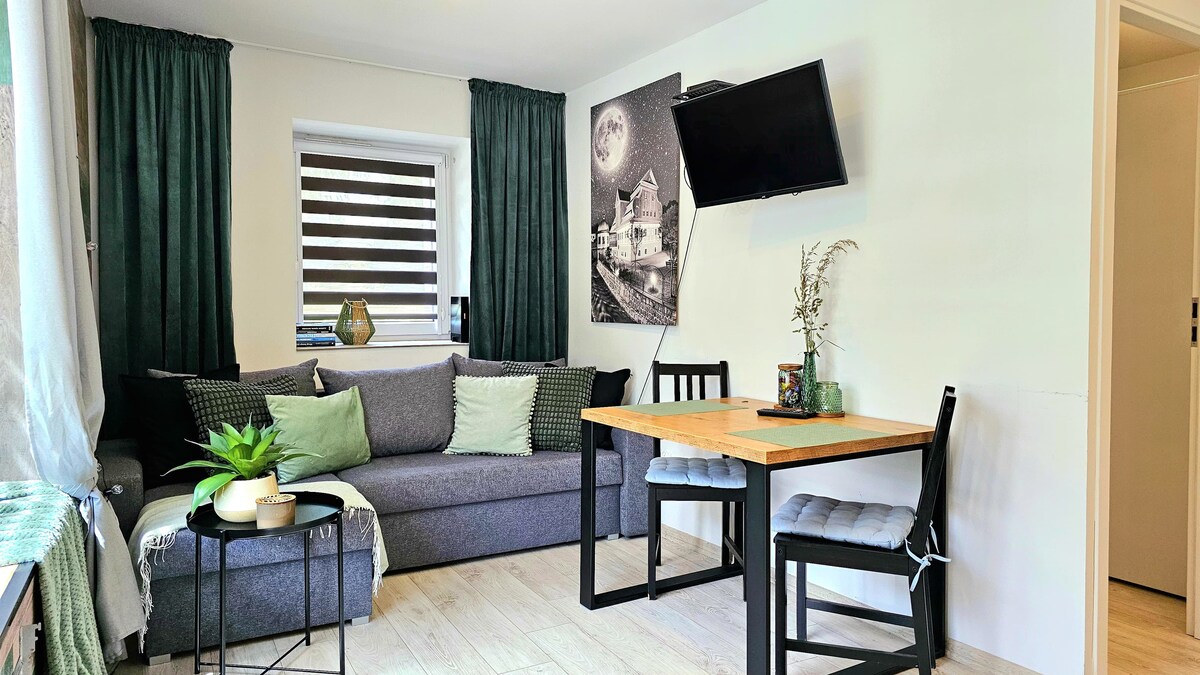 Przytulne mieszkanie w centrum Polanicy - Zdrój po kapitalnym remoncie. W mieszkaniu znajduje się łazienka i kuchnia z płytą indukcyjną oraz mikofalówką wyposażona w niezbędne przybory. Można również przyrządzić pyszną kawę w ekspresie kapsułkowym. Ogrzewanie podłogowe +grzejnik w łazience. Wygodne rozkładane łóżko o wymiarach 160x200 zapewni wygodny i miły sen. Na miejscu szybki Internet oraz telewizja z dostępem do Netflixa. Jest również pralko-suszarka. Idealne dla singla i pary