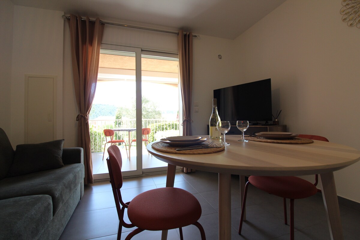 Novi studio površine 35 m2, u malom mirnom selu s pogledom na planine, privatnim parkingom, prekrasnim dnevnim boravkom s Wi-Fi mrežom, spavaća soba ima ormar s policama i krevet od 160 cm, modernu i kompletnu kuhinju. Postoji terasa s vrtnim namještajem i visećom ležaljkom, opuštanje je zagarantovano! Posteljina i čišćenje su uključeni. Udaljen je 15 minuta od plaža Saint-Florenta, kao i manje od 30 minuta od aerodroma Bastia Poretta i luke Bastia.