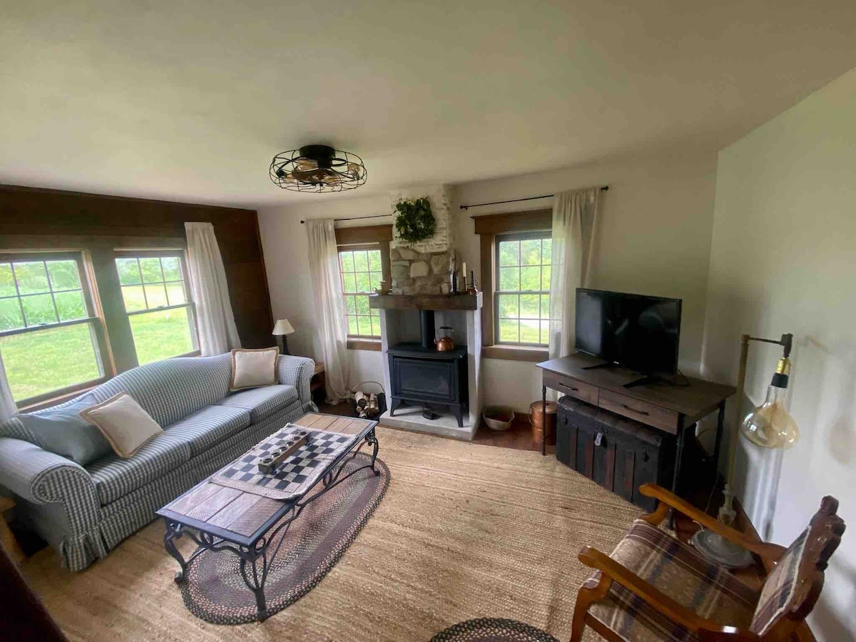 Opustite se s cijelom porodicom u ovoj mirnoj, potpuno renoviranoj seoskoj kući, u blizini shoppinga, restorana i Louisville Sluggera. Smještena na farmi koja radi, samo 3 milje od The Shoppesa u Grand Prairieu, ova seoska kuća stara više od 100 godina sada spaja moderne pogodnosti s rustikalnim dekorom. Prilagođena obrada drveta od domaćina, spojena s više poboljšanih sadržaja (madraci Saatva, kafić, potpuno opskrbljena kupatila) donose udobnost vašeg boravka. Ovaj dom u kojem nema pušenja i kućnih ljubimaca može primiti do 8 osoba.