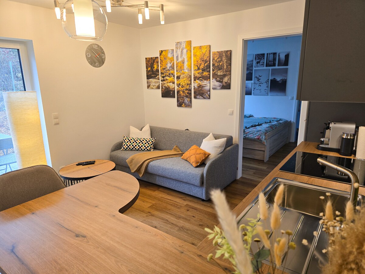 Prekrasan, moderan, jednosoban stan (25 m2) u maloj zasebnoj seoskoj kućici u Gasseldorfu (okrug izvan Ebermannstadta). Stan se nalazi na kraju slijepe ulice i poziva vas da se opustite i opustite u prirodi. Stan se nalazi direktno na biciklističkoj/planinskoj stazi (pretežno ravne, ravne rute odmah ispred ulaznih vrata). Ebermannstadt je udaljen 2,5 km, a pješačka staza do vanjskog bazena je 1000 m (automobilom 3 km).