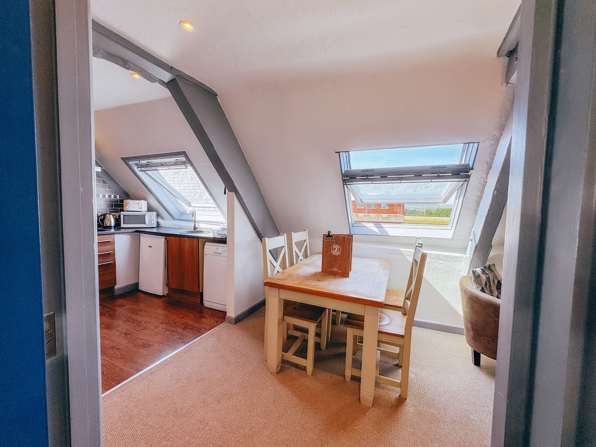 Samostalna soba, odvojena od glavne kuće, koja se sastoji od velike bračne spavaće sobe i spojenog kupatila. Sadržaji uključuju TV, besplatan Wi-Fi, frižider, mikrovalnu pećnicu, toster, čajnik i privatni parking van ulice. Nalazi se nedaleko od M5, 15 minuta od centra grada Exeter i 5 minuta vožnje od ušća grada Topsham i Sandy Park, doma Exeter Chiefs. Nagrađivana poljoprivredna radnja i kafić Darts Farm i biciklistička staza ušća udaljeni su samo nekoliko minuta hoda, kao i pub George & Dragon.