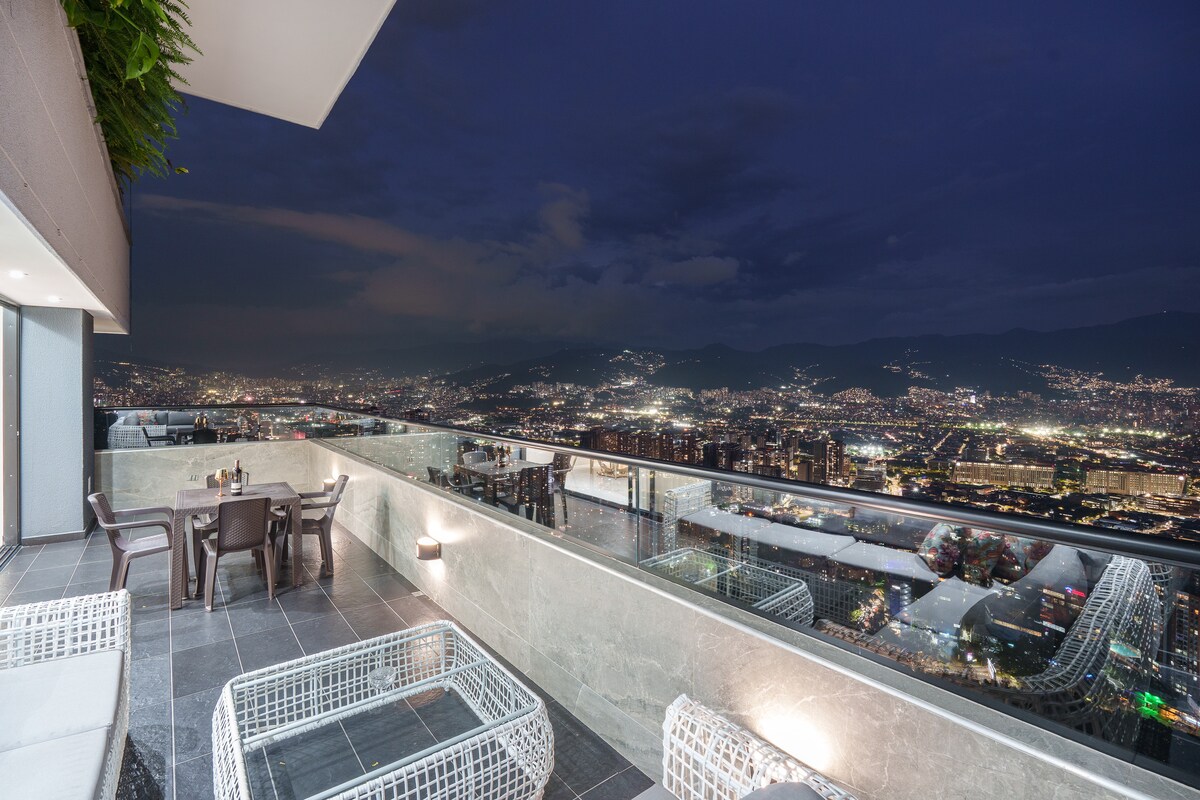 Luksuzni pogled na Poblado | Jacuzzi – bazen · klima uređaj · 85-inčni TV