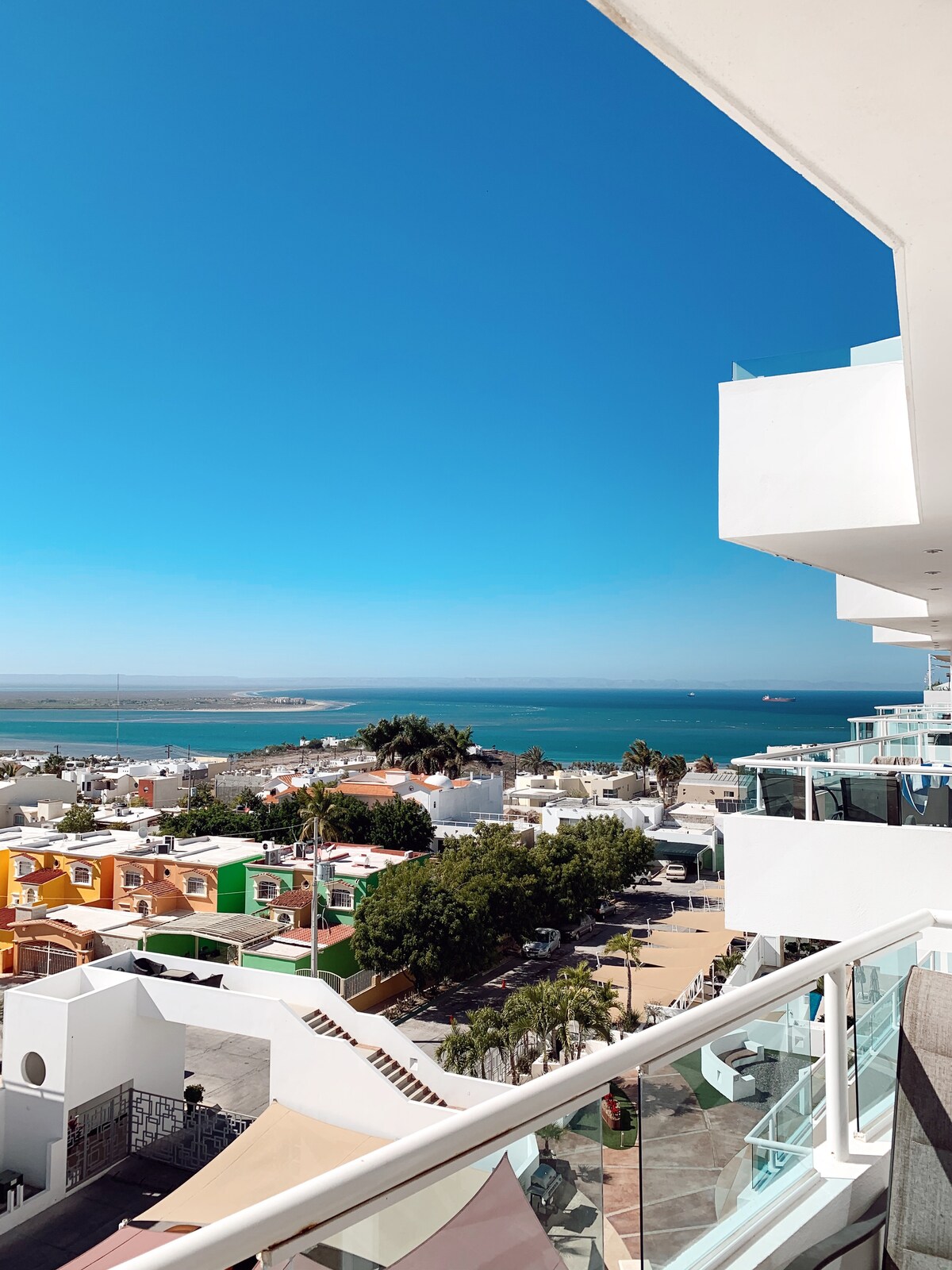 Ovaj moderni jednosobni stan ima jedan od najboljih pogleda u La Pazu. Uključuje privatni balkon, velike zajedničke bazene s prostorima u hladovini, roštilj, sjedala za opuštanje i dolazi s prekrasnim pogledom na okean i zalaske sunca. Stan ima sve potrebne sadržaje - mašinu za pranje/sušenje veša, potpuno opremljenu kuhinju, pametni TV, klima-uređaj i Wi-Fi. Prodavnice namirnica, kafići, najbolji restorani i plaže La Paz udaljeni su svega nekoliko minuta vožnje. Sigurno i tiho područje. Osiguran parking s ogradom. Savršeno za vaš odmor u La Pazu.