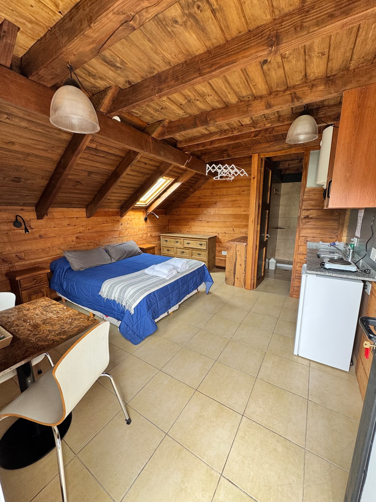 Estudio pequeño 20mts2 !!! luminoso confortable para dos personas. Con los elementos necesarios para tu estadía en El chalten !! Atención la habitación es un entrepiso y la escalera empinada.Ver las fotos de la escalera !!Información extra hay termotaque eléctrico , con capacidad de 50lts ,para las duchas recomendamos dejar un tiempo de 30 minutos entre duchas!