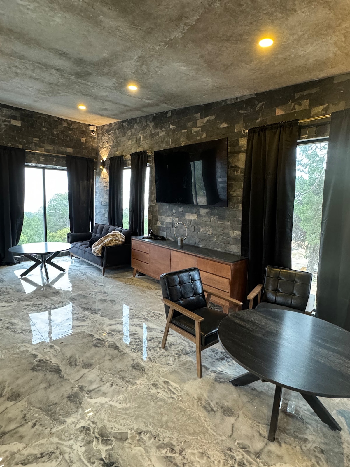 Širok vrt i udobna palapa za uživanje i odmor. Uz roštilj i uživanje u suživotu. Ima internet i prikazuje 80 kanala i usluga streaminga. Dva kupatila s WC-om i šamponom, sapunom; WC na otvorenom. 4 pojedinačna kreveta, 1 bračni krevet i 1 kauč na razvlačenje Soba ima lijep kamin s uključenim drvima za ogrjev kako biste uživali u nezaboravnom trenutku, ognjištu vani. Potpuno opremljena kuhinja, dnevna soba i trpezarija uključuju društvene igre.