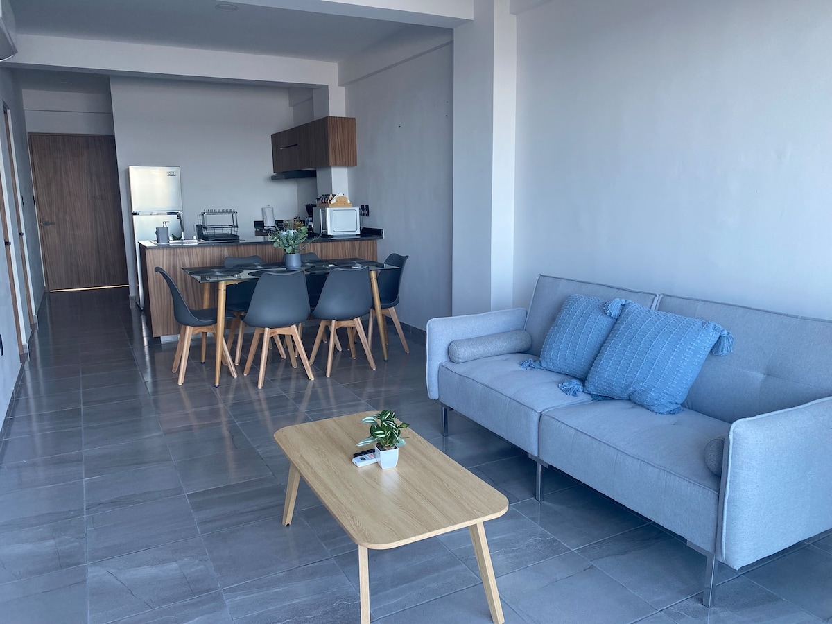 Opustite se i uživajte u ovom udobnom luksuznom smještaju na obali rijeke . Zgrada ima: • Alberca, ponesite peškir! • Terasa • Lift • Parking mjesto Depa ima: • Klima uređaj u spavaćim sobama i trpezariji • Smart TV. • Wi-Fi. • Opremljena kuhinja • Zatamnite zavjese Osim toga: • Čišćenje dostupno tokom vašeg boravka uz nadoplatu. • Prihvatamo najviše 2 kućna ljubimca po cijeni • Naplaćujemo Čekamo vas!