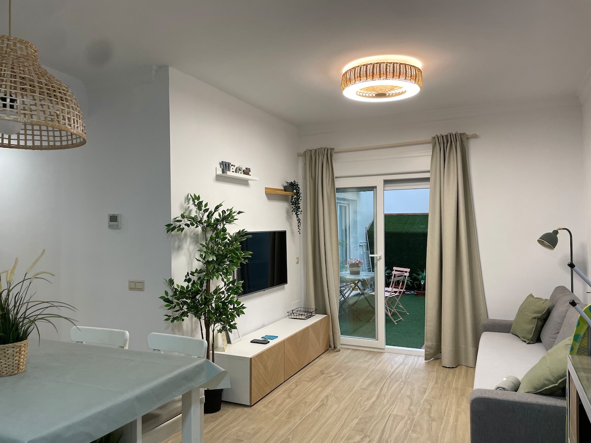 Prekrasan jednosobni stan, 40 m2 i terasa od 60 m2. Vrlo udobno. Ima pogled na okean i sunce cijeli dan. Pogledajte zapadno. Nalazi se u prizemlju. Idealno je za par. Bebe i djeca su ZABRANJENI. Zgrada ima 60 stanova. Bazen je sezonski i udoban. Moj stan je udaljen nekoliko minuta hoda od šetališta i plaže Santa Ana te parka i autobuskih stanica. Moja kuhinja je potpuno opremljena. Postoje 2 klima uređaja i svi kućanski aparati su novi. Imam 600 MB Wi-Fi mreže