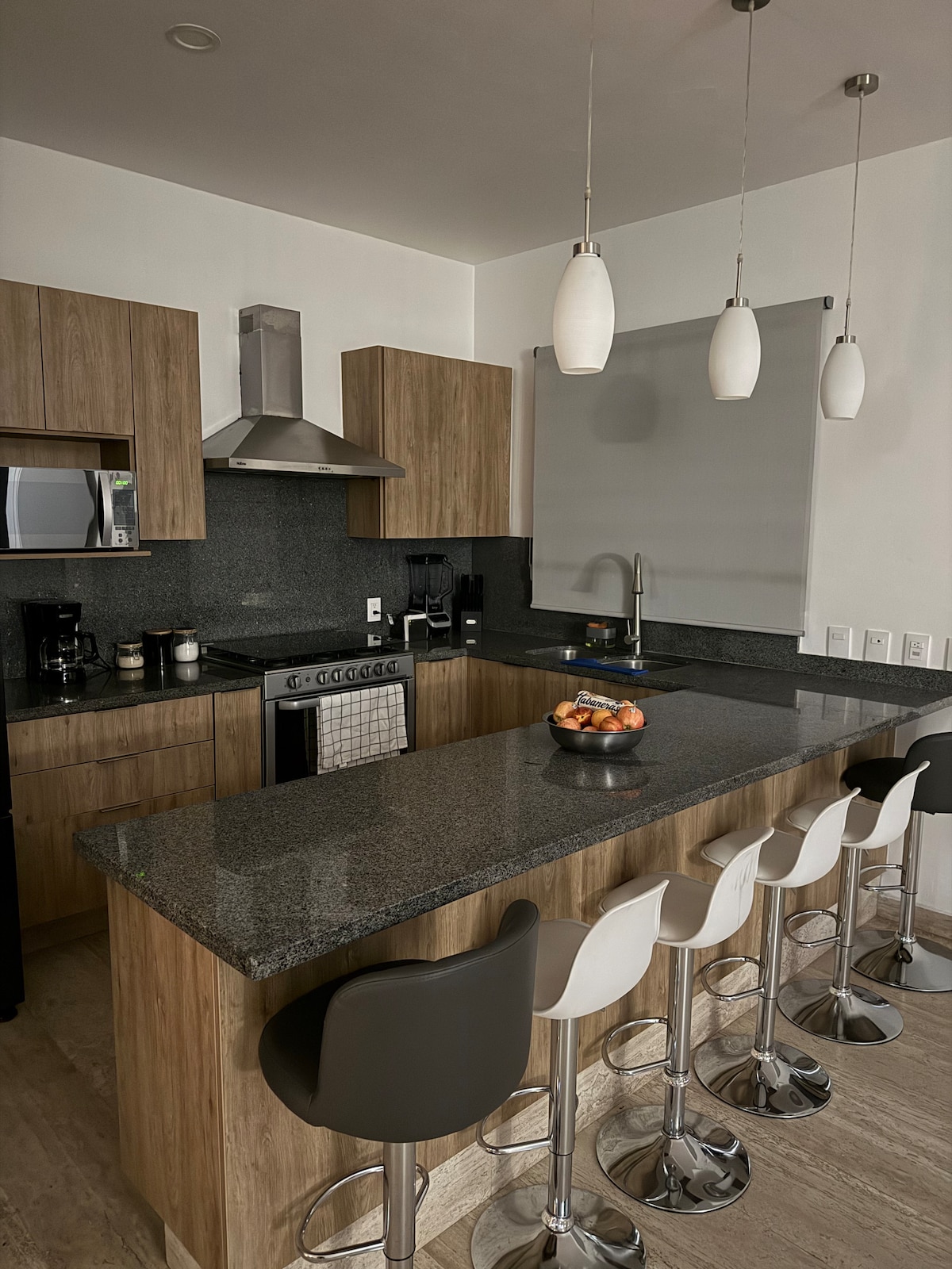 Luksuzan i lijep stan s art deco dizajnom i namještajem, opustite se i uživajte u pogledu jer se nalazi na 9. spratu, ima sadržaje kao što su slikovit bazen, teretana, panoramski krov, prostorija za druženje, roštilj, sigurnost i liftovi. Stan ima jednu sobu s bračnim krevetom, jedno kupatilo, vešeraj, potpuno opremljenu kuhinju, frižider s ledomatom i dispenzerom za hladnu vodu. Osiguravamo 2 peškira za tuš kabinu i 2 peškira za bazen. Nudimo i obilaske gradova i čarobnih gradova.