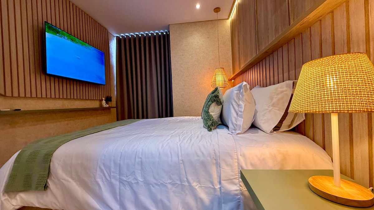 Modern apartment on the 17th floor of Hotel Urban Studios with amazing Medellin views. Just a 10-minute walk to Tesoro Mall and close to top nightlife, yet in a calm and pleasant area. Features a comfortable King bed, full kitchen, A/C, washing machine, gas dryer, fast Wi-Fi, and access to Al Alma restaurant with room service. The building includes a pool, jacuzzi, gym, work rooms and 24/7 security.